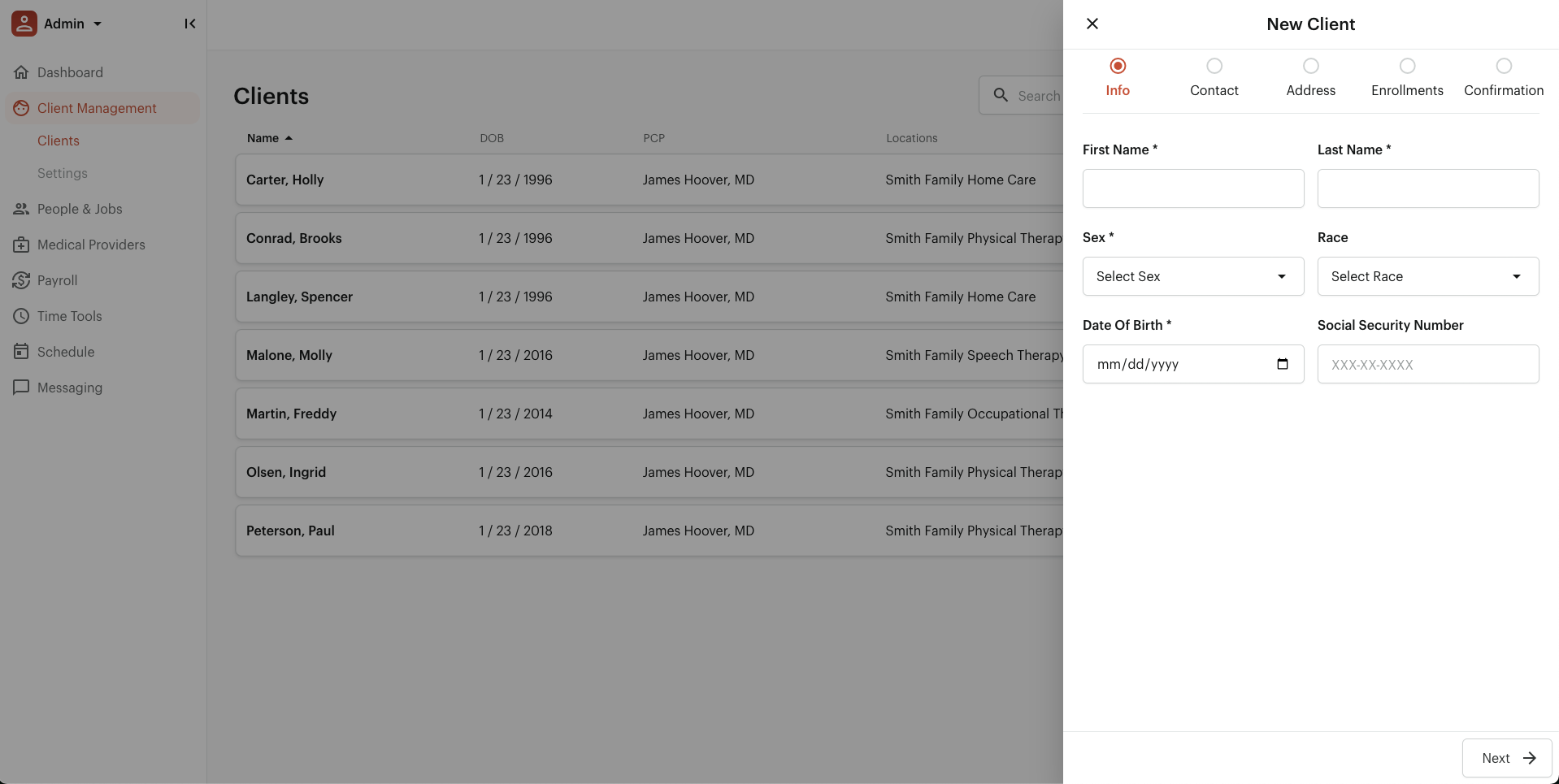 - View detailed client records and profiles